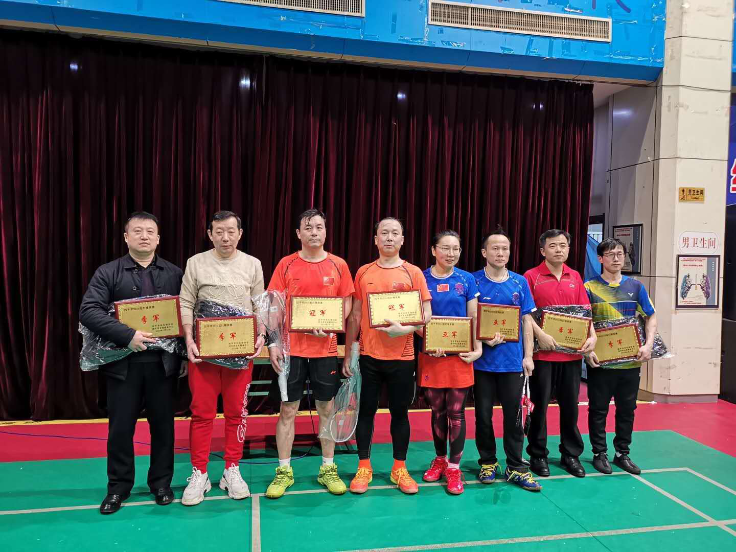 由四平市全民健身中心和四平市羽毛球协会联合主办的四平市(2019)羽毛球俱乐部团体赛和“迎新春”羽毛球双打精英赛于2019年1月20日在四平市全民健身中心落幕,本次比赛共有全市16支羽毛球俱乐部参加,同时还进行了双打精英赛,全市共有近百人参加了这两项比赛。比赛采用五羽轮比的比赛形式,要求每队需有各俱乐部主席和一名女队员参加,这给比赛增加了趣味性,与以往的比赛相比更有参与感。经过紧张激烈的比赛,大野羽毛球俱乐部获得团体冠军,肖涤海、韩飞获得双打精英赛的冠军。