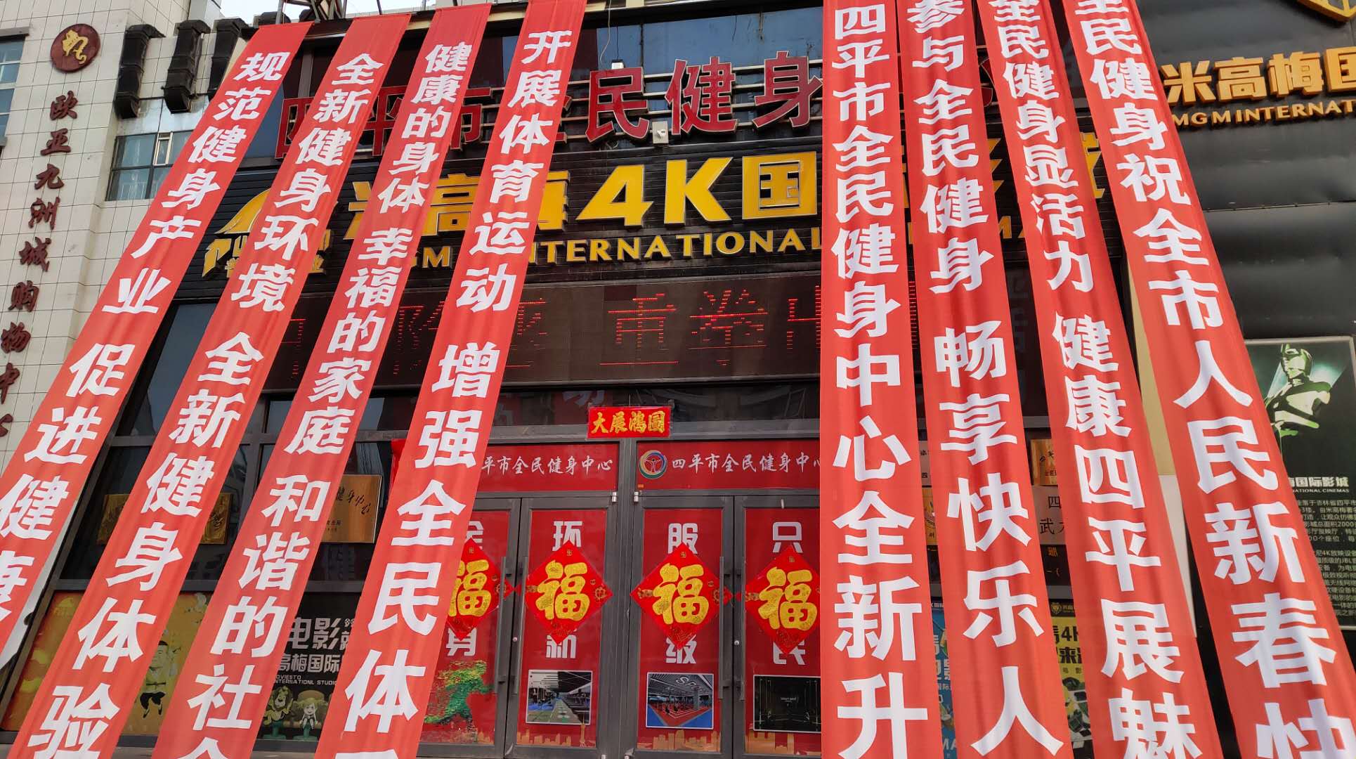 四平市体育局直属单位四平市体育彩票管理中心、四平市全面健身中心在本单位门口悬挂灯笼、贴春联喜迎春节。